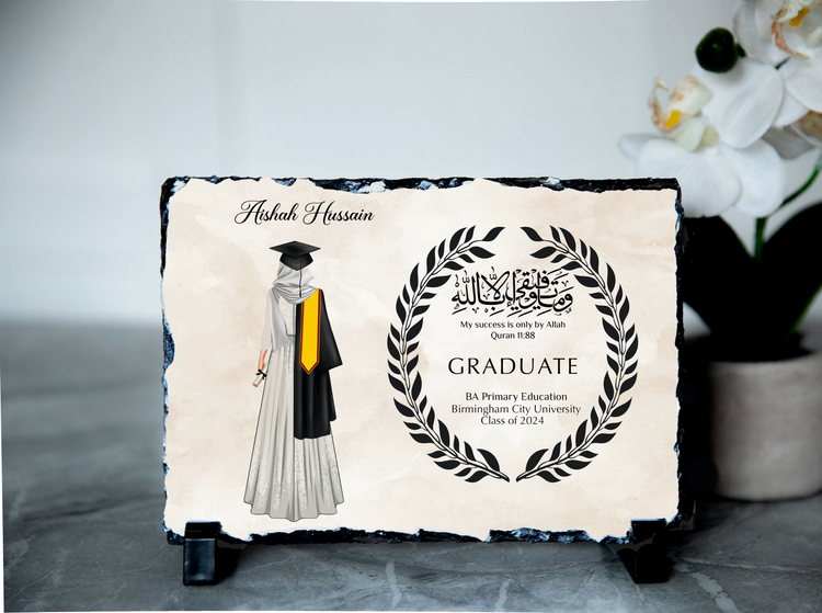 Personalised Rock Slate Frame Muslim Graduation Gift | For Her | For Him