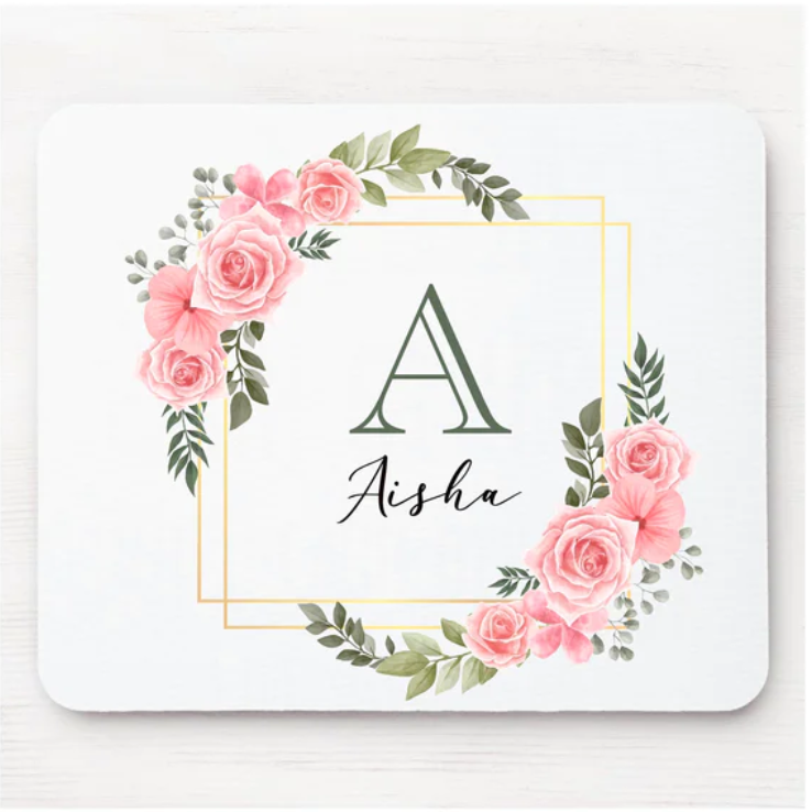 Personalised Initial Name Floral Mouse Mat Rectangle | Mousepad