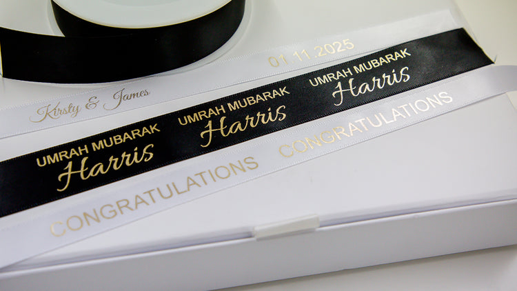 Custom Personalised Satin Ribbons in 10mm, 15mm, 25mm and 38mm Width – Perfect for Gifts, Crafting, and Special Occasions