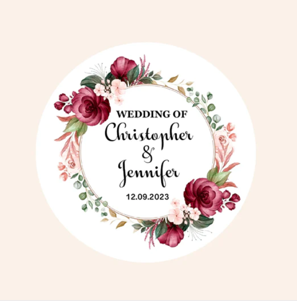 Personalised Floral Stickers Wedding | Nikkah Stickers | Printed Stickers | Favour box stickers | Cone Stickers | 4cm Sticker Matt