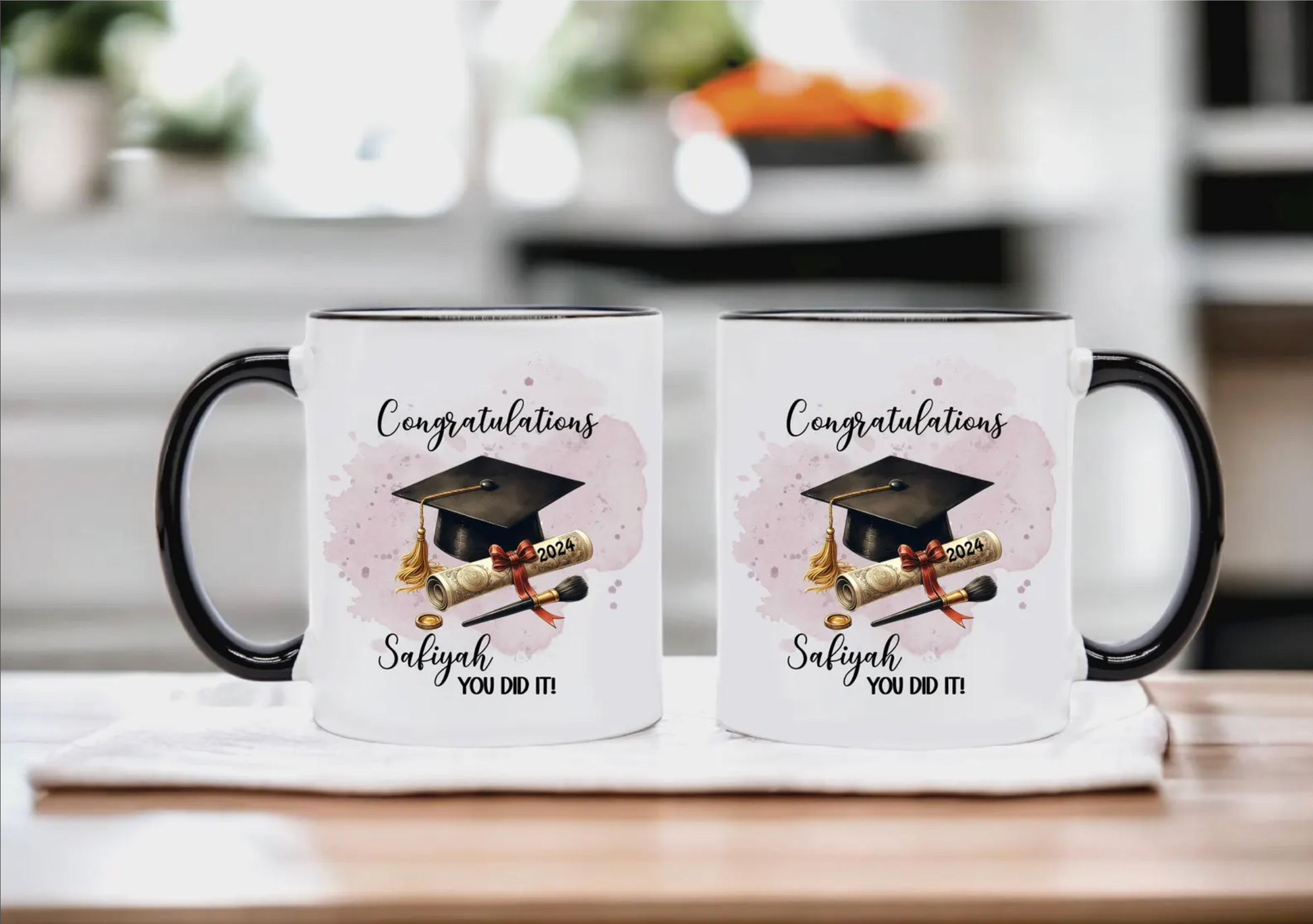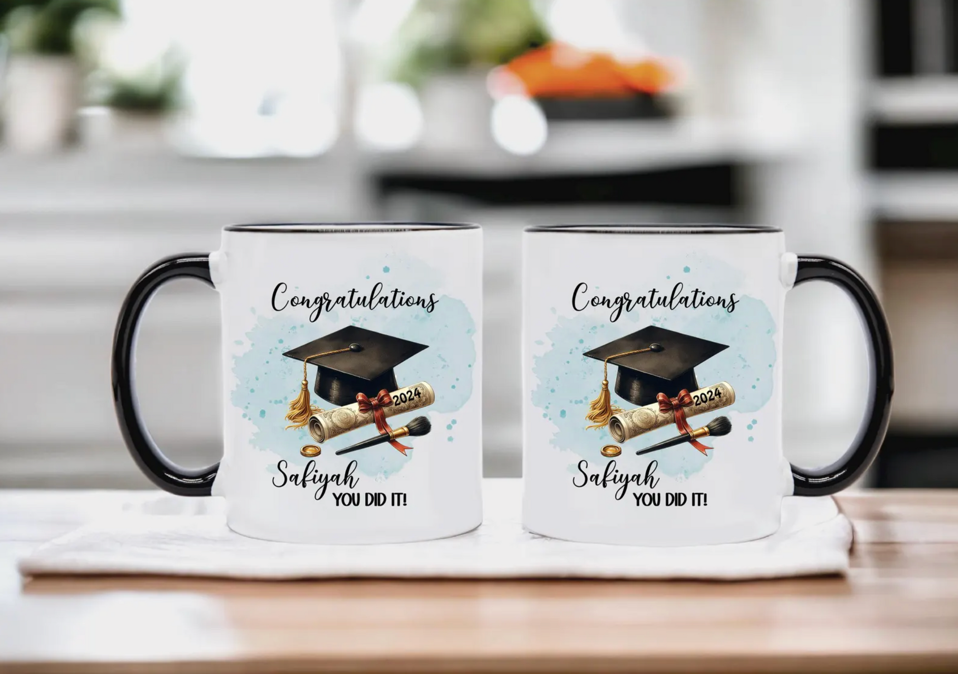 Personalised Graduation Mug – Black Handle & Rim, Custom Graduation Gift, Class of [Year], Unique Keepsake Mug | You Did It Mug
